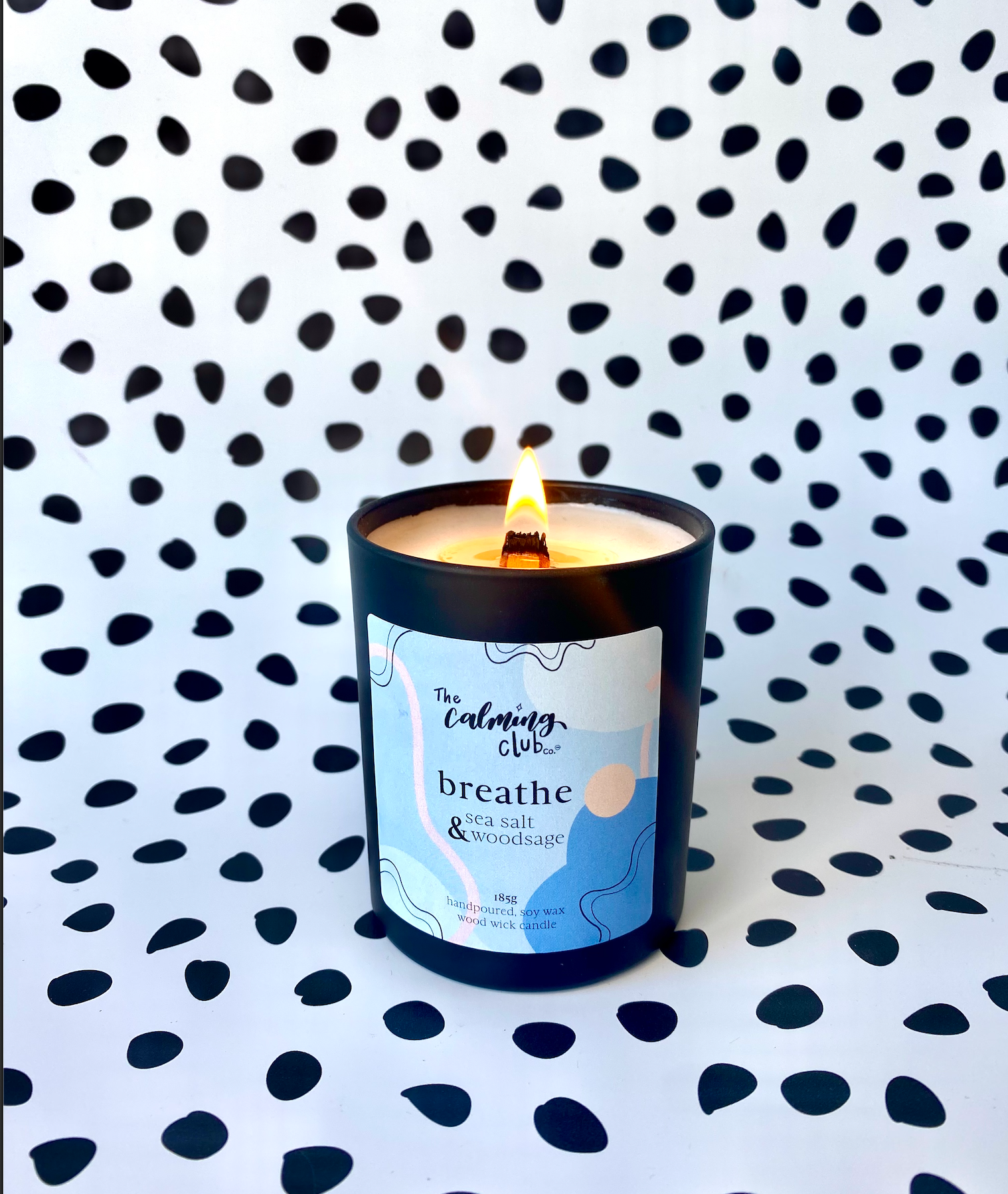 Breathe Soy wax, Wood wick crackle candle - Sea salt and Woodsage